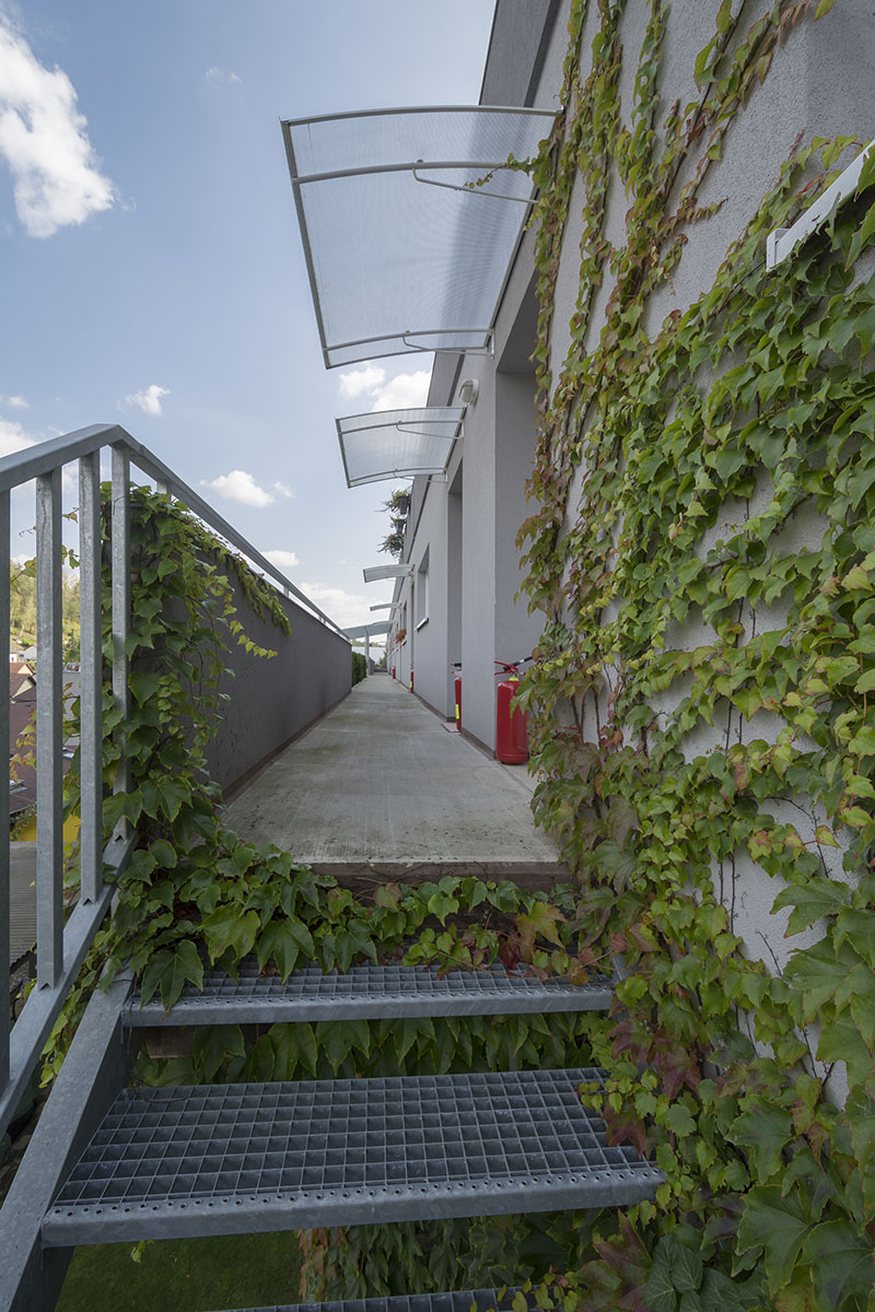 pavlače, která je kryta stínicí konstrukcí. A i tady jsem ocenil snadné