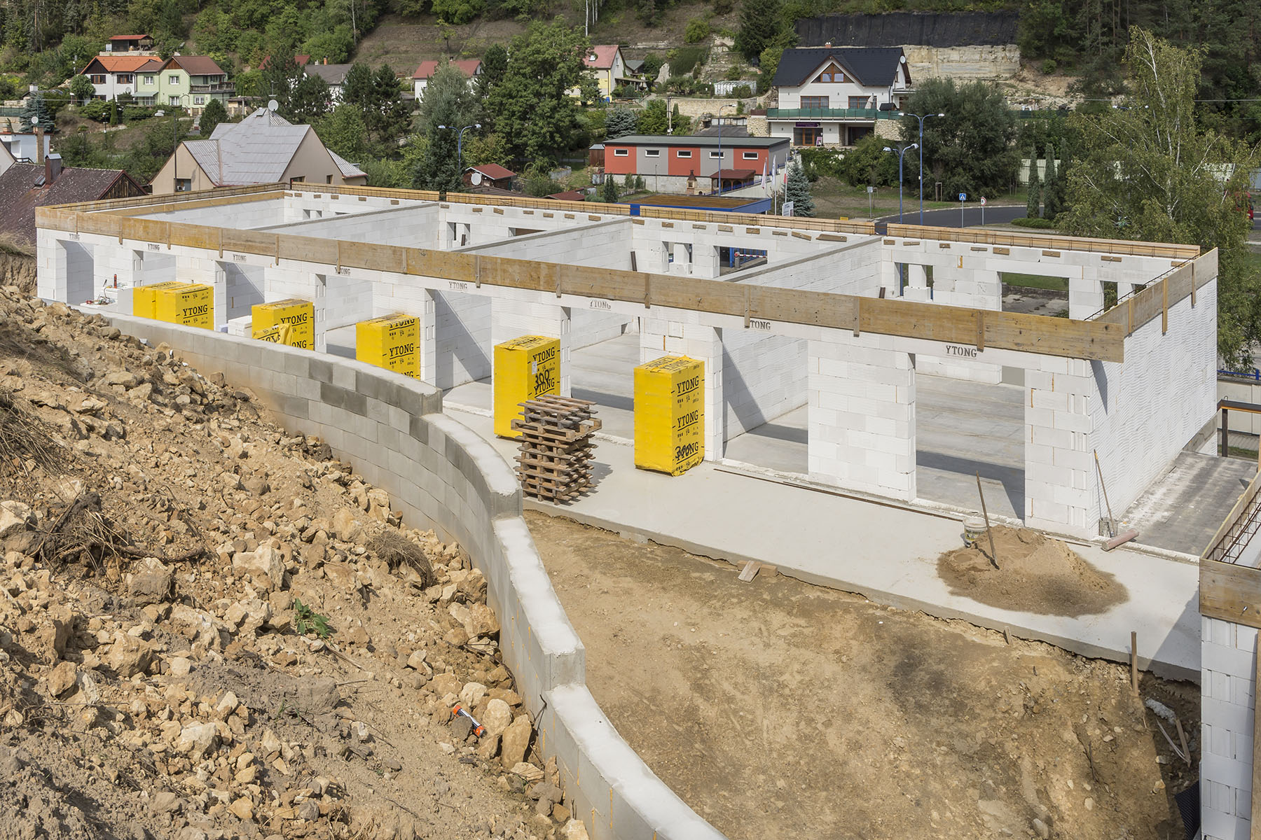 konstrukcí tvoří vyztužené nenosné UPA profily z Ytongu, které minimalizují