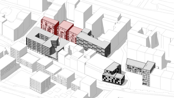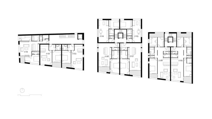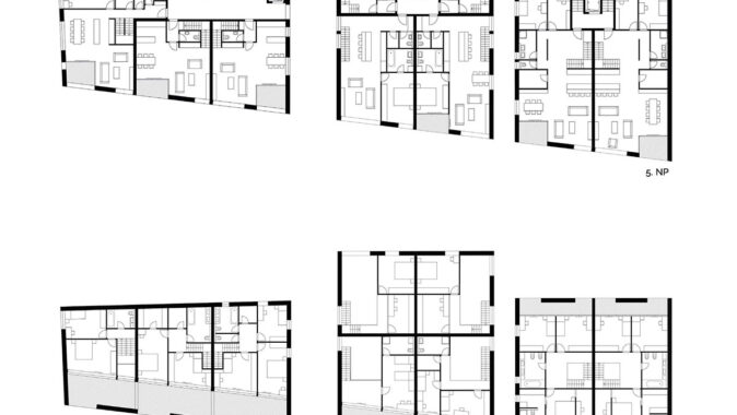 Domy mají šest nadzemních a jedno podzemní podlaží. Parkování, umístěné v podzemí, je společné