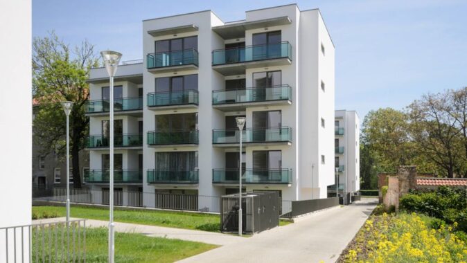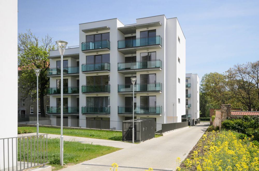 Domy jsou neagresivní bílé kubusy, pod nimi jsou garáže s 68 parkovacími místy. Každý byt tak má k dispozici vlastní stání, balkon nebo terasu. Objekty nabízí veškeré varianty rozměrů bytů, od 1+kk až po 5+1 s terasou, které se nacházejí na střechách. Přízemní byty mají vlastní soukromé zahrádky. Komplex obklopují veřejné zahrady, které jsou bezpečné a uzpůsobené pro pohyb dětí. Komunikace, která prochází veřejnou zahradou, slouží pouze pro stěhování a není průjezdná. Bytový komplex je uzavřený v zahradě, ale zároveň využívá všech předností, které v současné době brněnská čtvrť Královo pole obyvatelům poskytuje.
