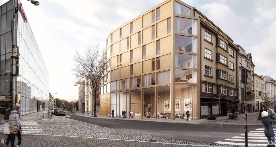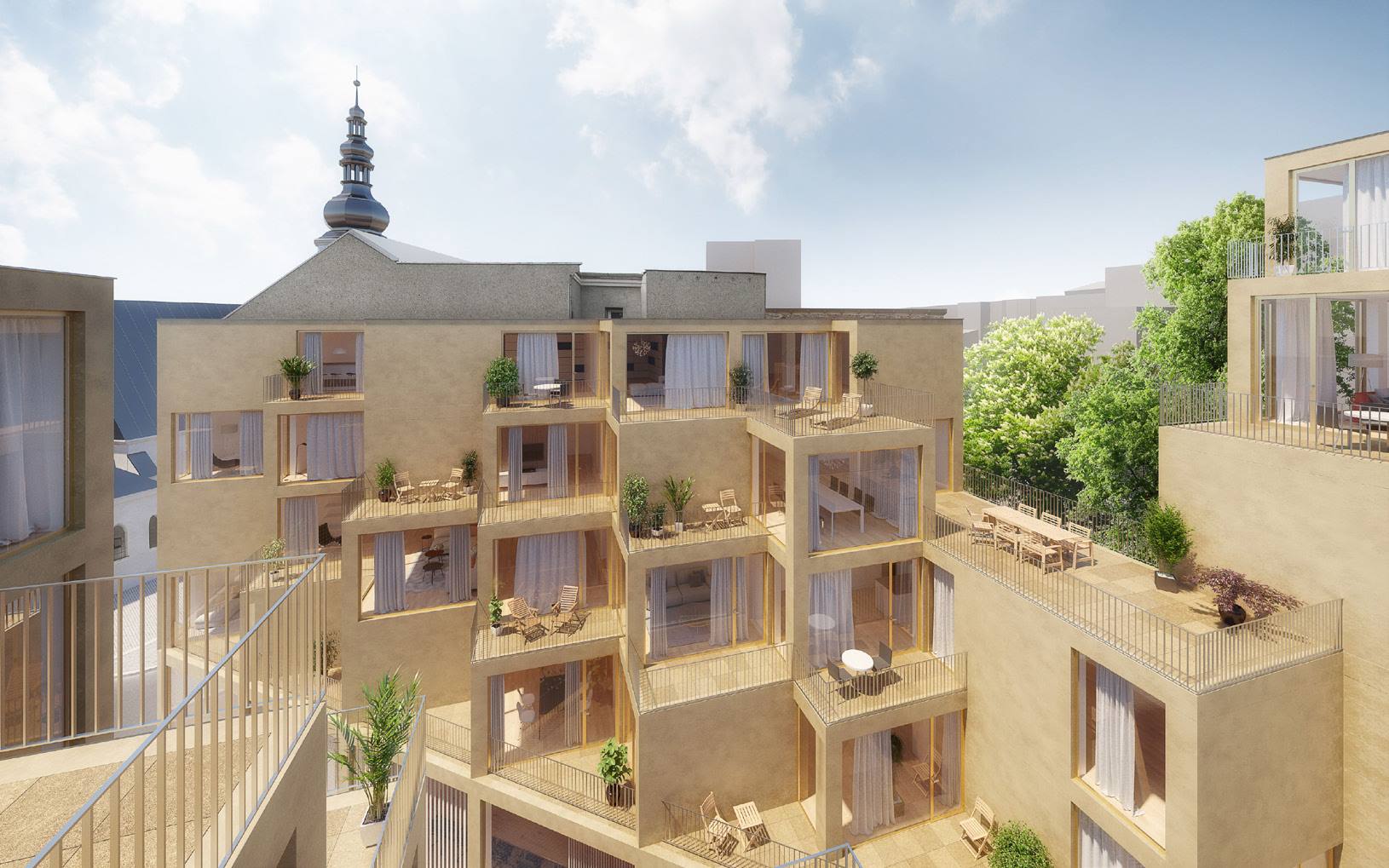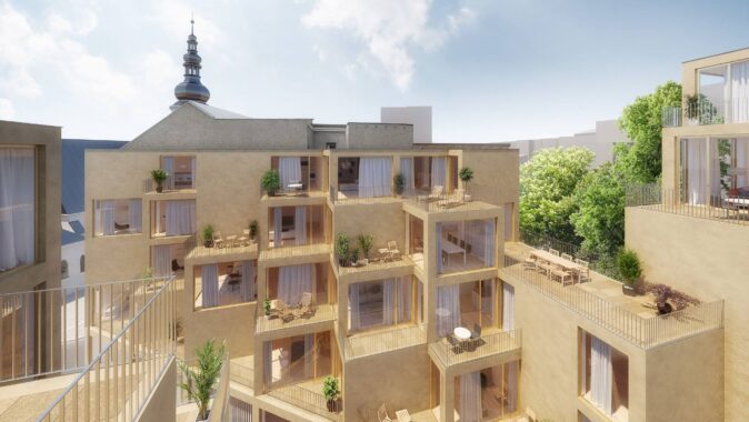 (ČTK) – Nový bytový dům na křížení ulic Kostelní a Biskupská v centru