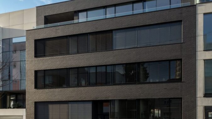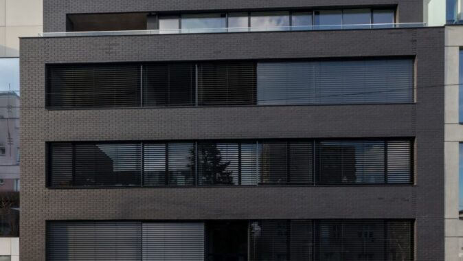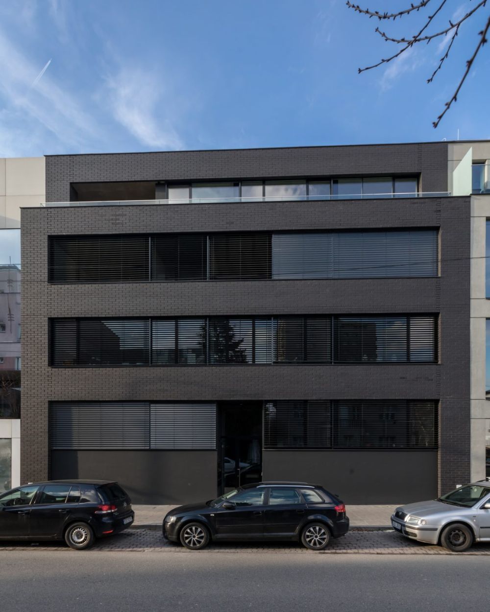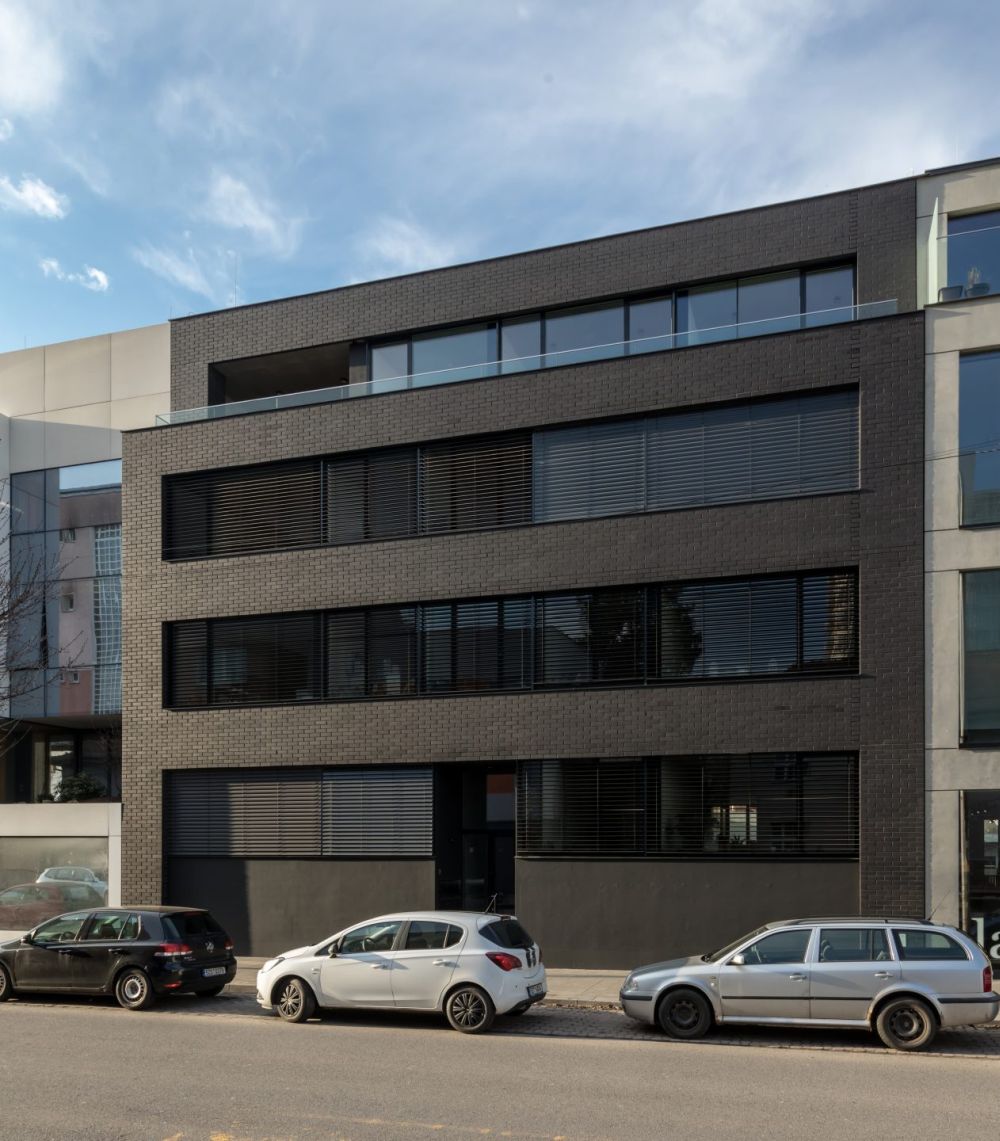 solitérních staveb. Bytový dům sleduje stavební čáru a je rozložen na celou