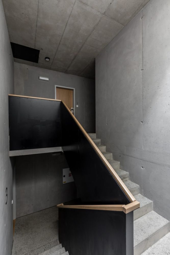 Podzemní podlaží je určeno pro parkování, které je přístupné z vedlejšího polyfunkčního domu, dále tu jsou sklepní kóje a technické zázemí objektu. Zvýšené přízemí domu sestává ze dvou bytových jednotek o velikosti 4+kk doplněných o zahrady na ploše nad podzemním parkováním. Druhé a třetí nadzemní podlaží sestává vždy ze dvou bytů o velikosti 5+kk a 4+kk. V posledním ustoupeném podlaží je jeden byt o velikosti 6+kk se dvěma střešními terasami a artiem.