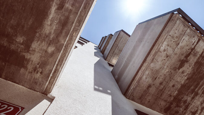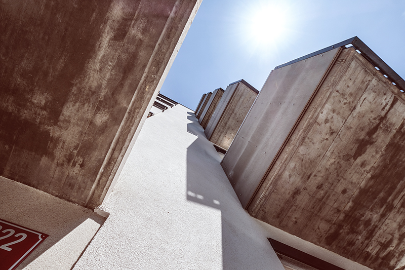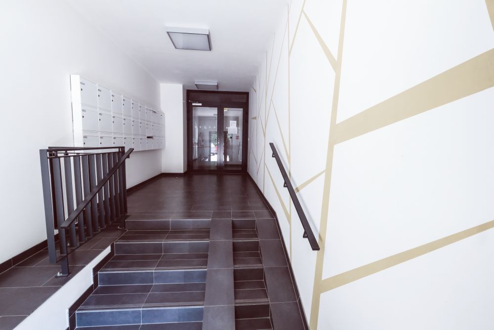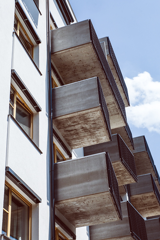 množstvím balkonů a lodžií. Vnitroblok zpříjemňují předzahrádky a upravená