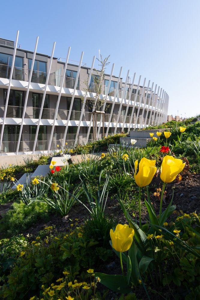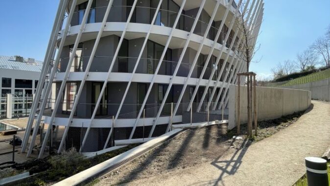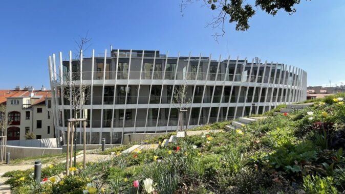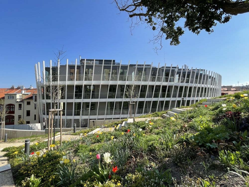 Ve svahu vilové čtvrti Hřebenka na pražském Smíchově se blíží ke svému dokončení novostavba bytového domu Holečkova 26. Budova eliptického tvaru nabídne nájemní bydlení se zahradou, ale také prostory pro obchody a služby.