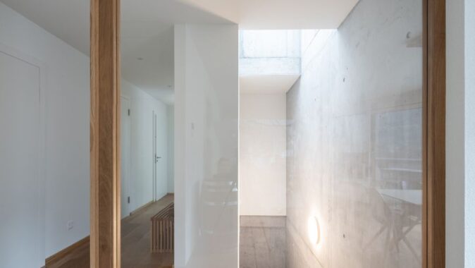 V podzemní garáži je sedm parkovacích stání pro auta včetně dobíjecí stanice pro elektromobil a osm míst pro kola. Další stání pro kola se nacházejí při vstupu do domu. Ve Švýcarsku se běžně počítá jedno stání pro kolo na každý pokoj v domě.