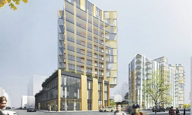 Holešovické tržnice v Praze 7. Plánovaný komplex výškových budov mezi