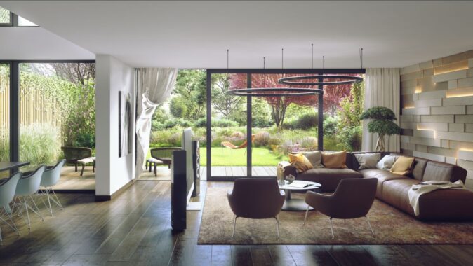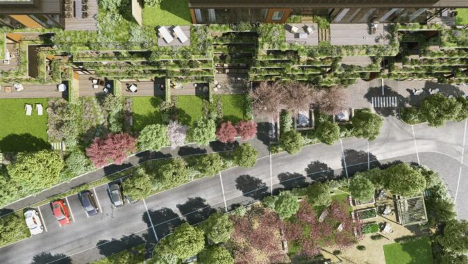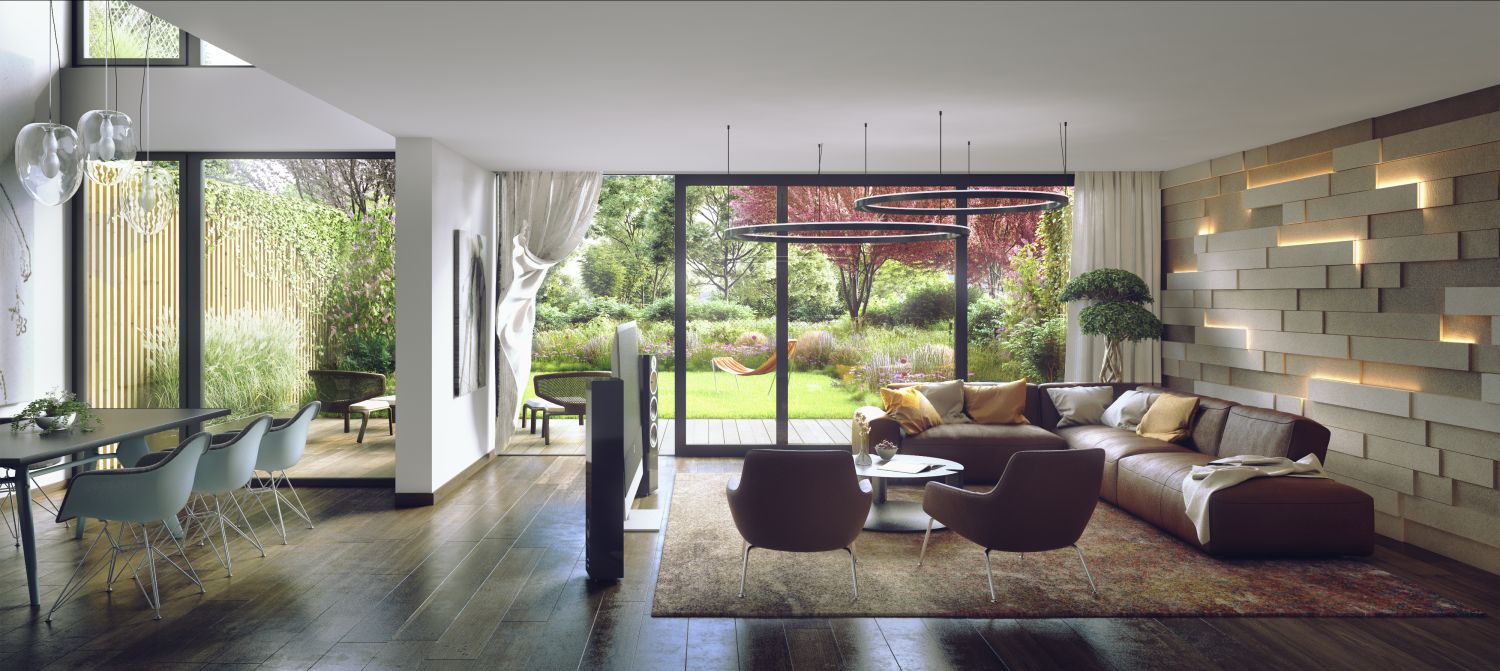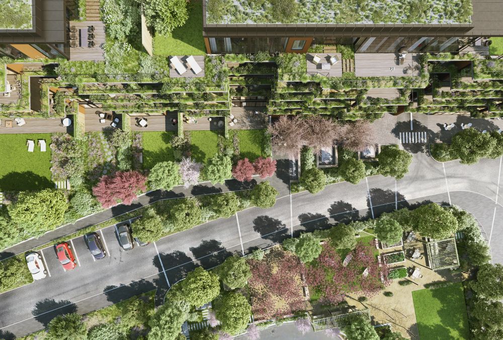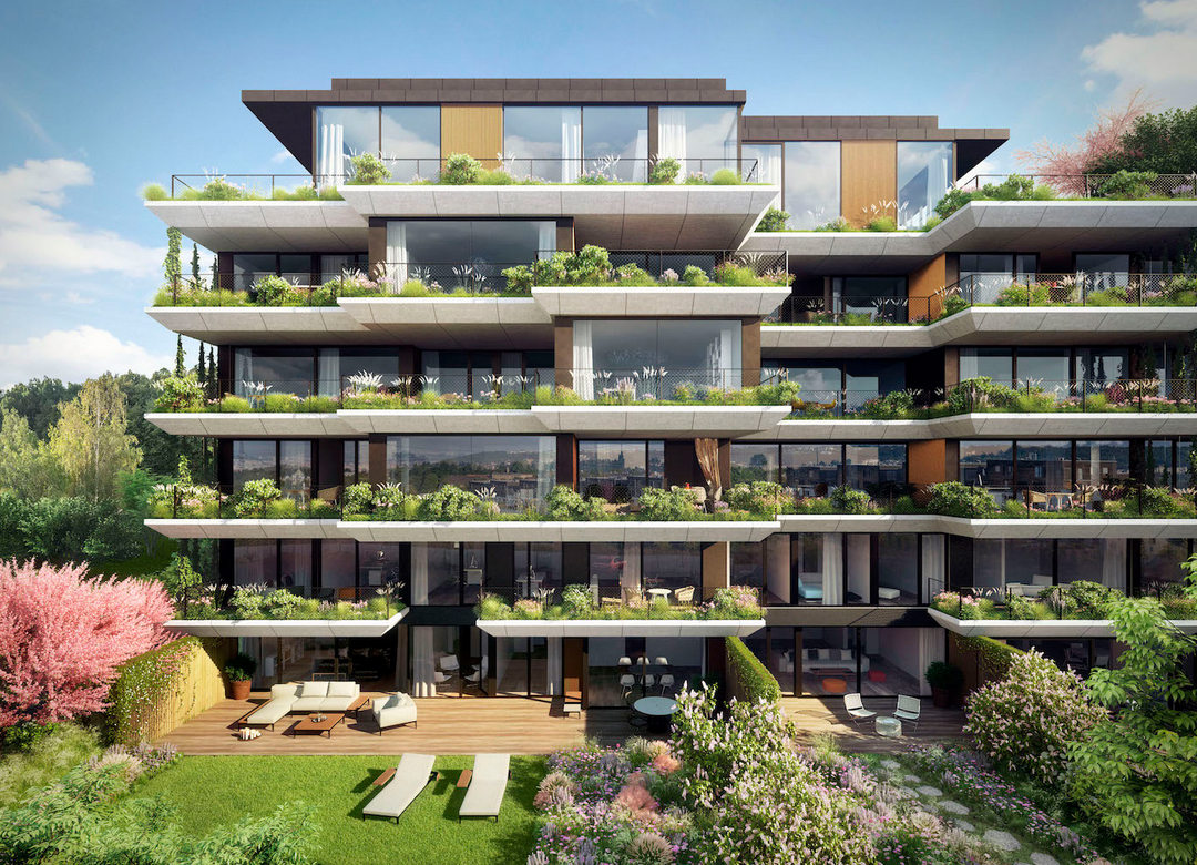 domu bude kromě zelené střechy, balkonů i fasády také soukromý park se