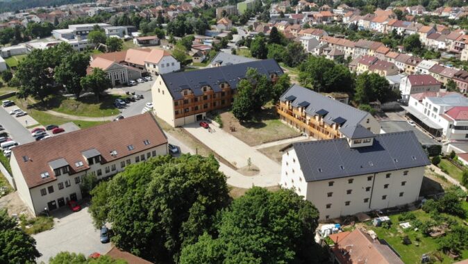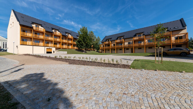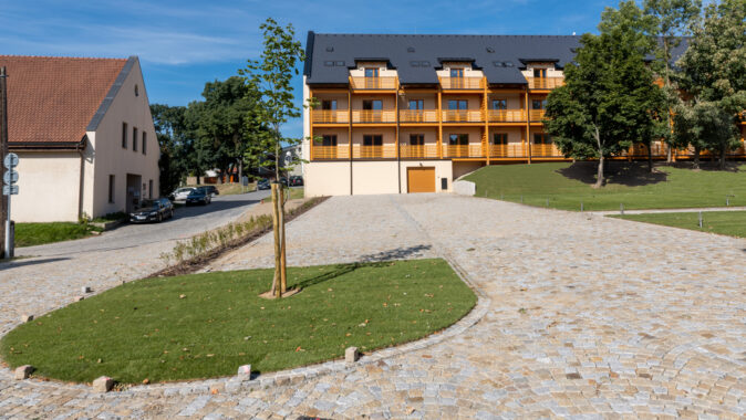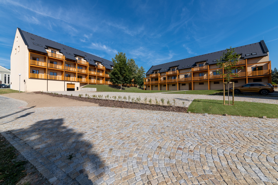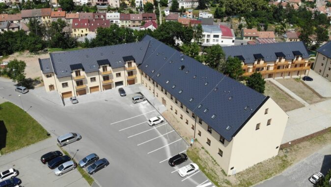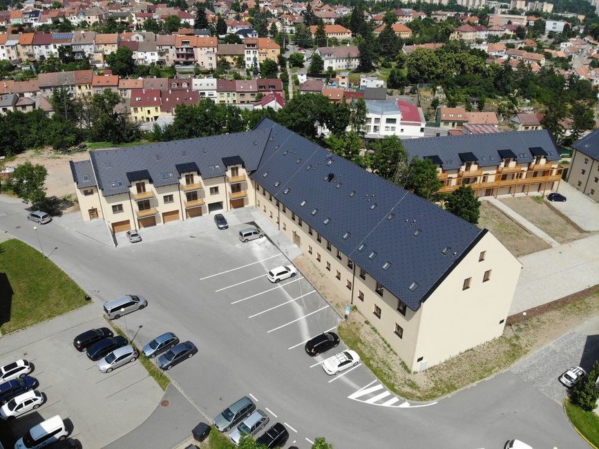 V těsném sousedství historického centra města Třebíče se nachází ojedinělý bytový projekt Nad Zámkem. Stojí na místě někdejšího hospodářského dvora, z jehož charakteru také vzhledově vychází. Na stavbu moderního objektu s venkovským charakterem byly použity cihly HELUZ. Vnější obvodové zdivo je provedeno z cihel HELUZ FAMILY 50 broušená, která dosahuje vynikajících tepelněizolačních vlastností, nepotřebuje dodatečné zateplení a zařídí optimální vnitřní klima. Mezibytové stěny byly vyzděny z cihel HELUZ AKU 30 pro lepší akustický komfort.