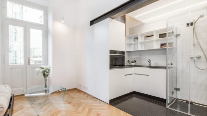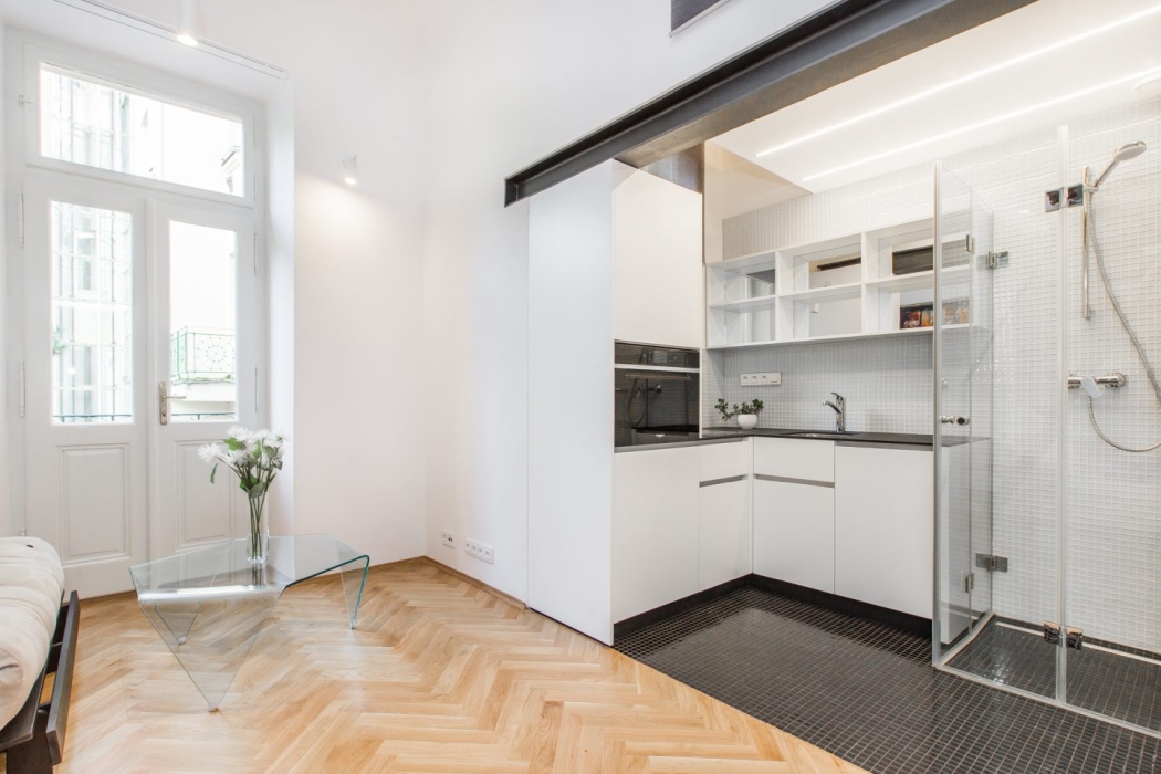 byt na Vinohradech v Praze. Zadáním bylo vytvořit bydlení na pronájem s