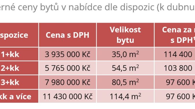 [1] Počítána jako dostupná cena bytu s DPH dělena podlahovou plochou uváděnou developerem (nejčastěji celková podlahová plocha dle NOZ).
