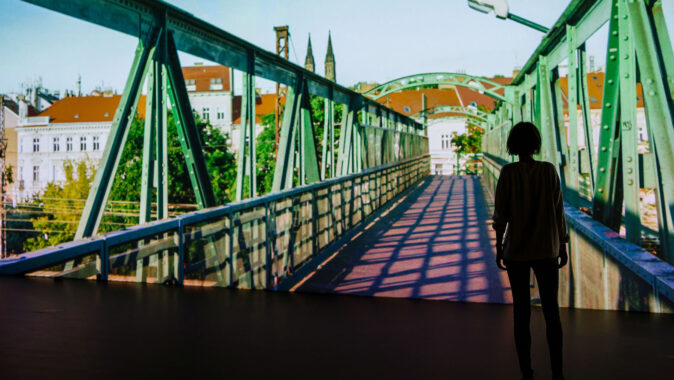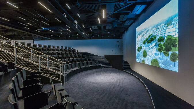 dlouhá projekční stěna. Právě na ní budou formou pohyblivé grafiky v rozlišení