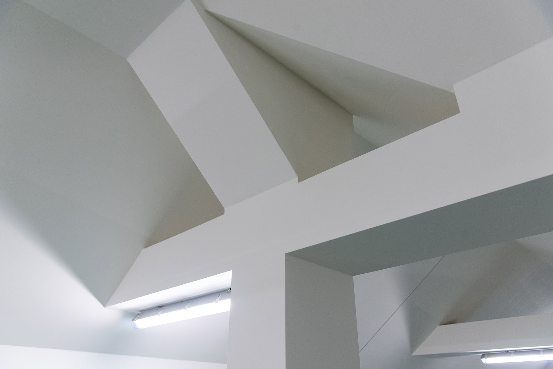 byly opláštěny všechny šikminy vedoucí od stropu až k podlaze. Navazují na ně
