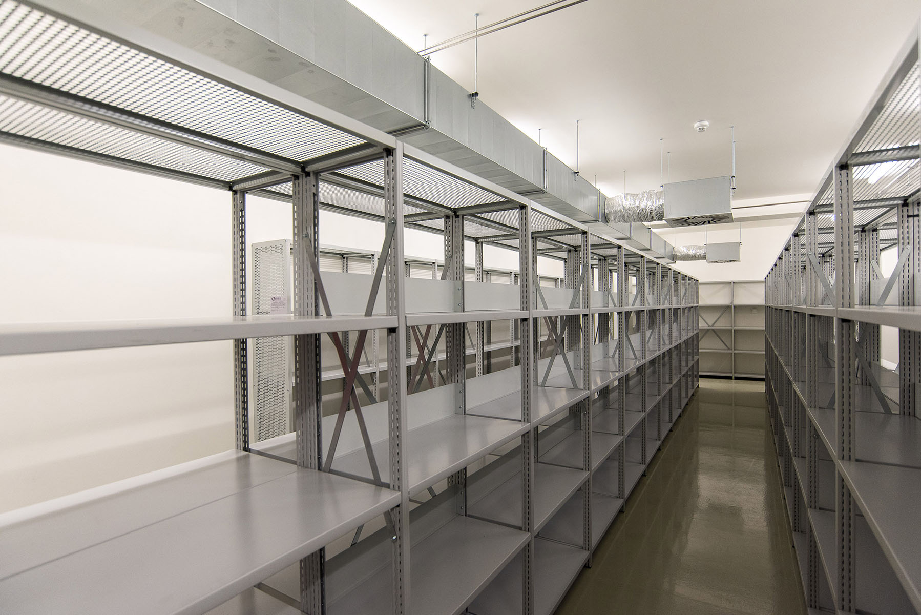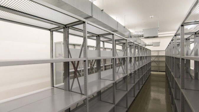 regály a specializované místnosti pro uložení nestabilních materiálů, prostory