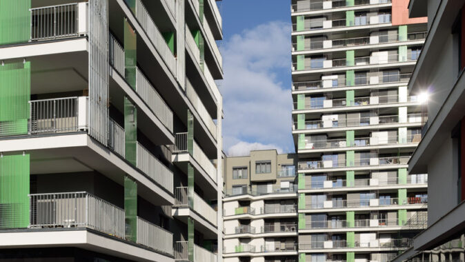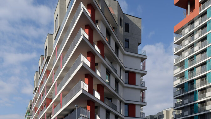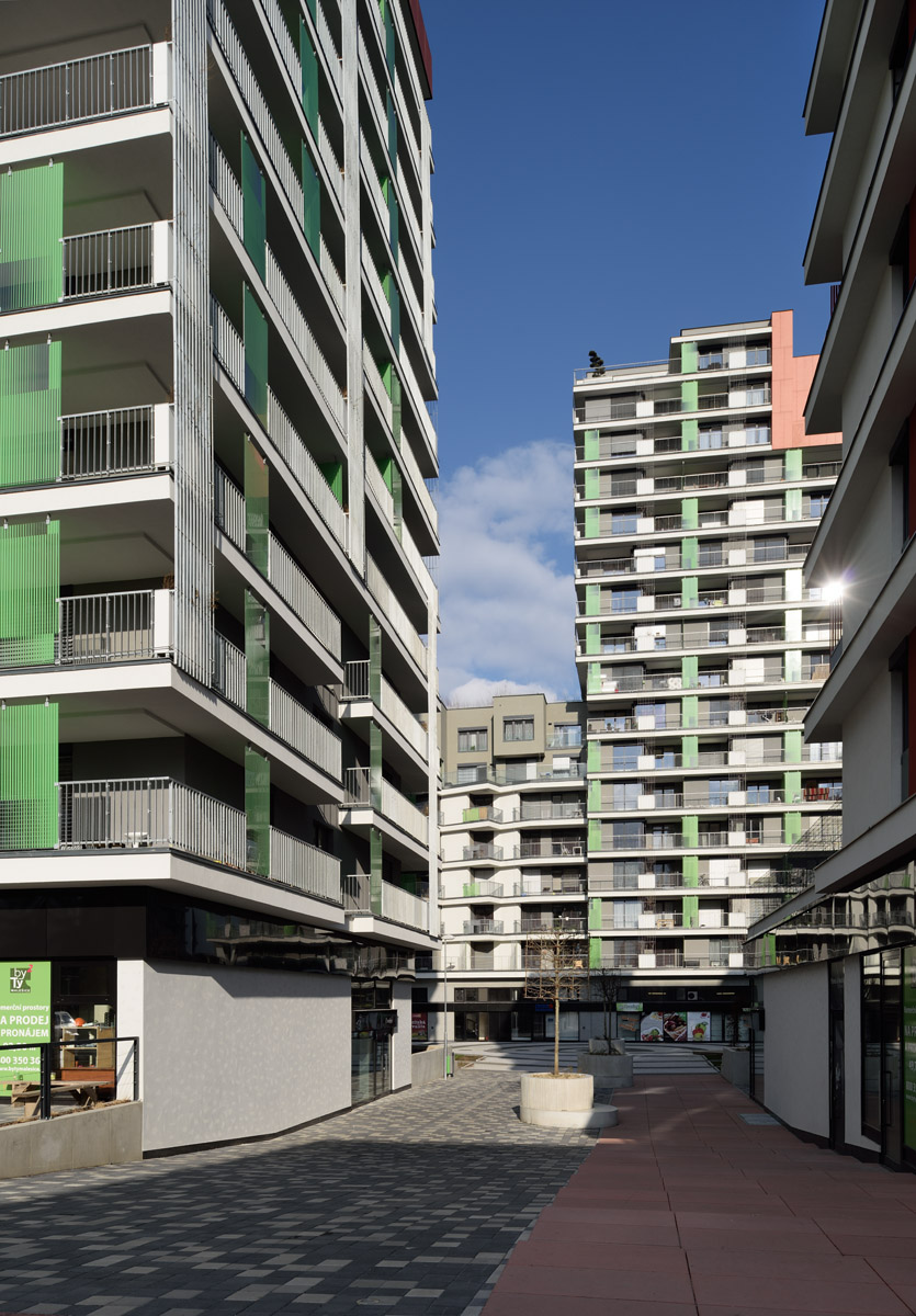 kladen na použití zeleně, a to jak v parteru, tak na samotných budovách.