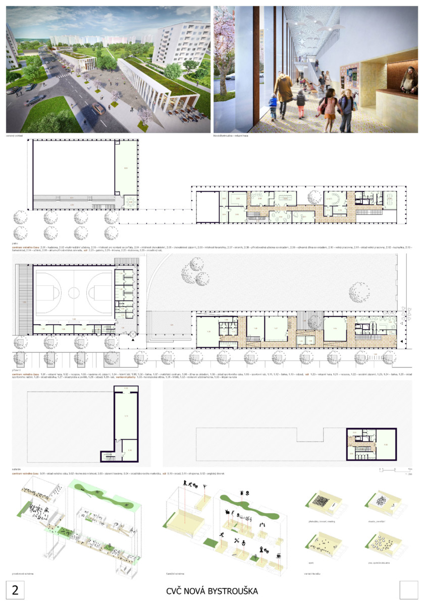Druhá cena byla udělena účastníkům Eduardu Sojkovi, Martinu Joskovi, Jakubu Sládečkovi a Martinu Sladkému, kteří jsou zároveň i autory projektu. Jejich návrh umisťující Centrum volného času do nejvyššího místa parcely získal 300.000,- Kč. Dále byla porotou udělena odměna ve výši 100.000,- Kč studiu AEIOU s.r.o., autory návrhu jsou Ing. arch. Jan Vojtíšek a Ing. Jakub Staník.