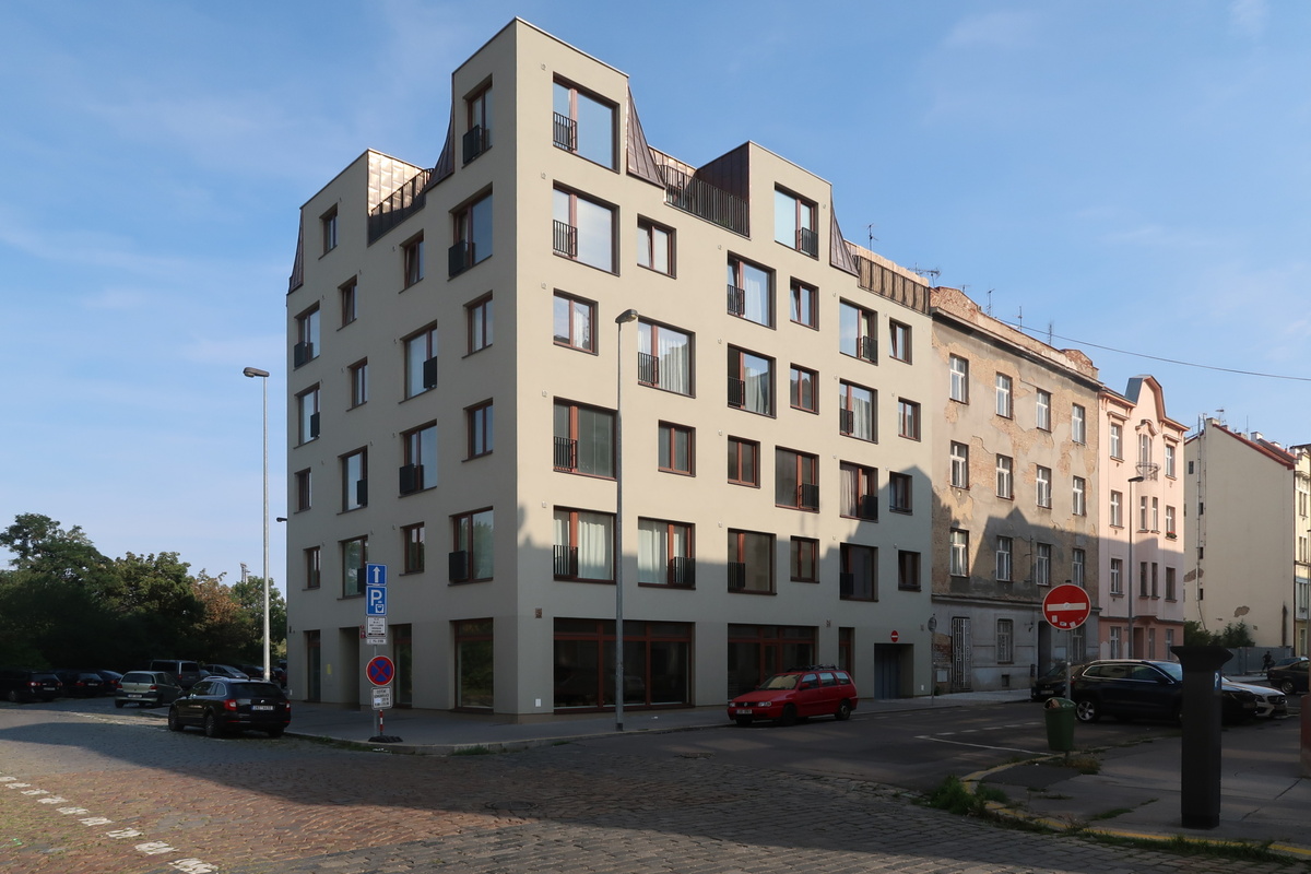 Roman Brychta, Adam Halíř, Ondřej Hofmeister, Petr Lešek, Rudolf Wiszczor, bytový dům v Praze-Nuslích