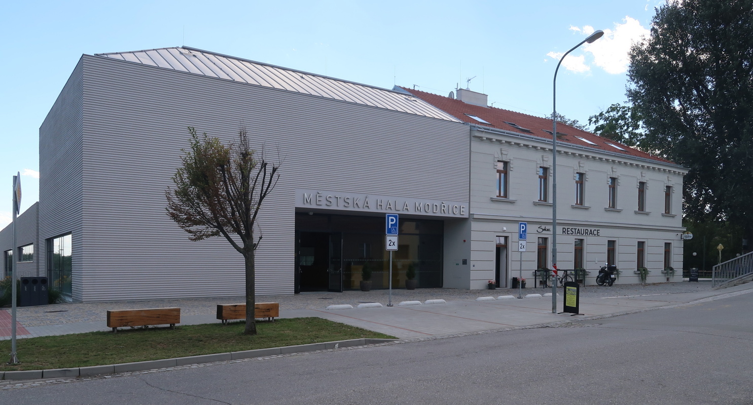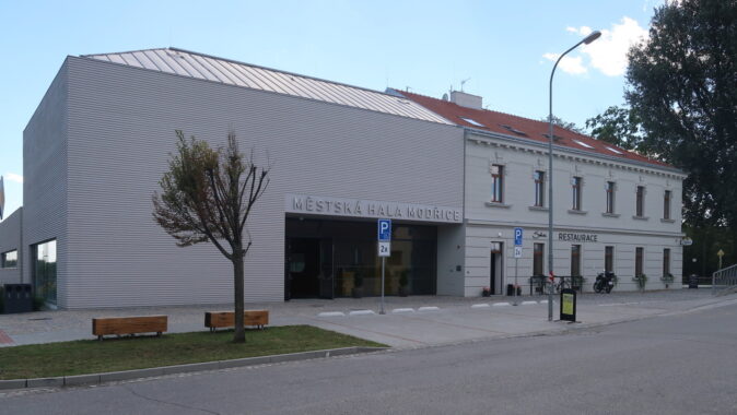 městská hala v Modřicích u Brna (Vojtěch Sosna, Jakub Straka, Jáchym Svoboda, spolupráce Karolína Urbánková, František Bosák, Bod Architekti)
