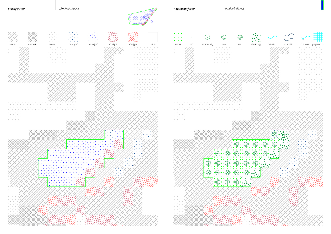 Autorka se podrobněji věnuje těm druhým místům a klade si otázku, jak s těmito místy hospodařit při reflektování dnešních ekologických otázek města. Na vybraných místech Prahy se pak snaží v oblasti modré a zelené infrastruktury aplikovat opatření, která povedou k zvýšení biodiverzity, evaporace, akumulace a filtrace dešťové vody. Hledá tak způsob práce s těmito místy, který by jim dal smysl, funkci, zásadně posílil jejich ekologickou funkci.
