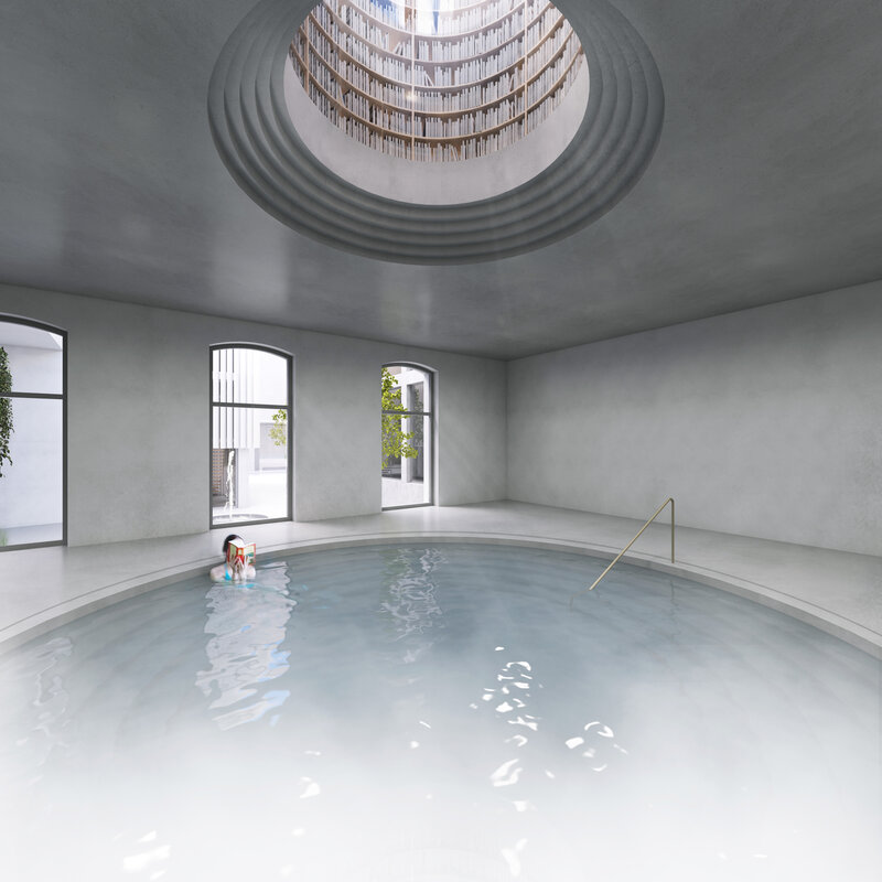 Návrh se zabývá chátrajícím areálem v centru Bratislavy přímo na nábřeží Dunaje. Autorka se v souladu se záměrem města rozhodla obnovit původní funkci lázní a doplnit je o knihovnu. Porota oceňuje architektonickou kvalitu nově vytvořeného multifunkčního prostoru, kde se naplnila autorčina koncepce zprostředkovat dojem antického zážitku použitím charakteristických rysů starověkých římských lázní. Zároveň se podařilo citlivě implementovat kvalitní soudobou architekturu s detailně promyšleným dispozičním řešením a začleněním teras vytvářejících příjemný prostor vnitřního atria. Porota kladně hodnotí také vynikající grafické zpracování prezentace. Projekt je zářným příkladem, jak může vypadat přeměna nesourodého rozpadajícího se objektu v centru města na živý multifunkční prostor vracející místu nový život.