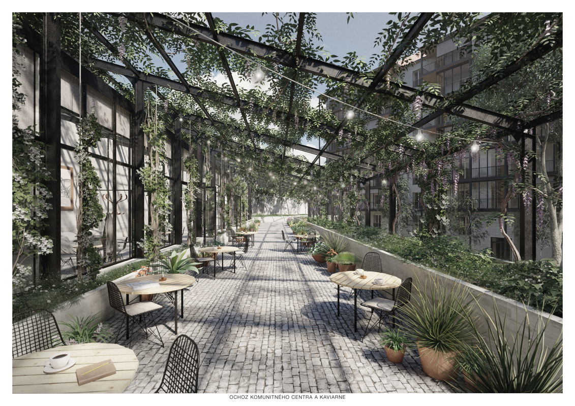 Celková koncepce se snaží celkem úspěšně kombinovat soukromou a veřejnou funkci vnitrobloku. Zároveň umístěním různorodé zeleně přispívá ke zkvalitnění celého prostoru, zlepšení mikroklimatu včetně využívání dešťové vody pro zpětnou závlahu zeleně. K celkovému architektonickému dotvoření přispívá i návrh balkonů a zimních zahrad orientovaných do vnitrobloku.