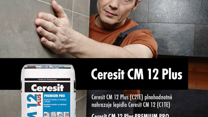 Zlepšené lepidlo se zvýšenou přilnavostí Ceresit CM 12 PLUS Premium Pro (C2TE) je určené k lepení nenasákavé (gresové) dlažby, obkladů a dlažeb, desek z betonu a přírodního kamene (nenáchylného na probarvení). Podkladem může být beton, cementové potěry, cementové i vápenocementové omítky. Vlastnosti lepidla umožňují použití na sádrovláknité desky a sádrokarton (tl. ≥ 12,5 mm) a hydroizolace a těsnicí malty Ceresit. Vysoká přídržnost lepidla umožňuje použití i na kritických podkladech, jako jsou stávající keramické obklady a dlažby, pevné malířské nátěry, sádrové podklady, anhydrit a pórobeton.