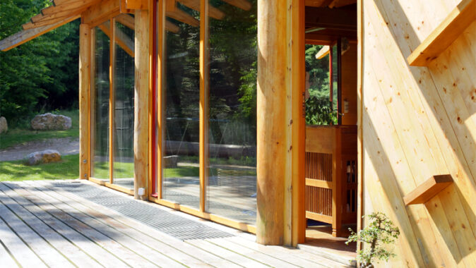 Charakteristickým rysem stavby je přiznaná dřevěná sloupová konstrukce a vize