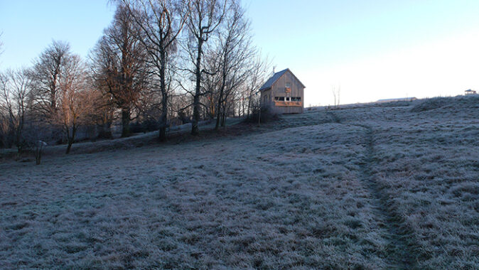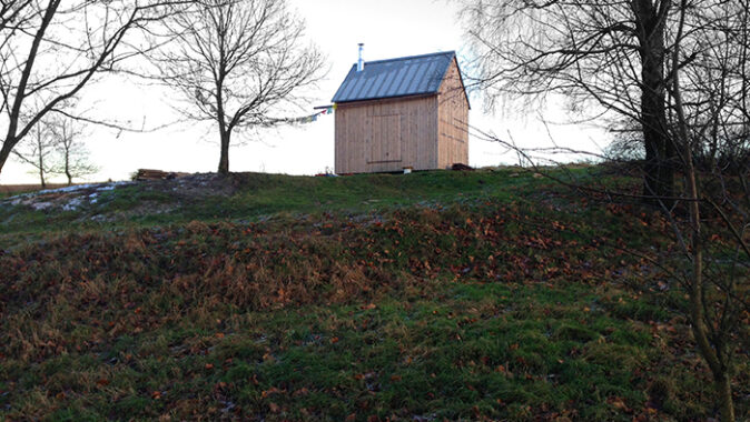 stavba skromného rekreačního objektu na hřebenu Krušných hor. Návrh sleduje