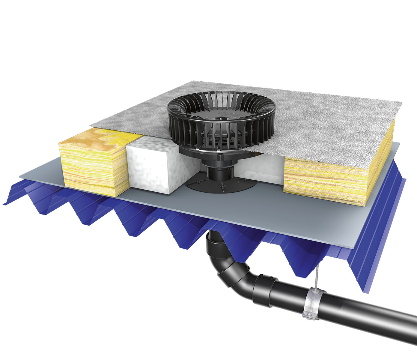 který zahrnuje střešní vtoky pro všechny typy střech, Wavin