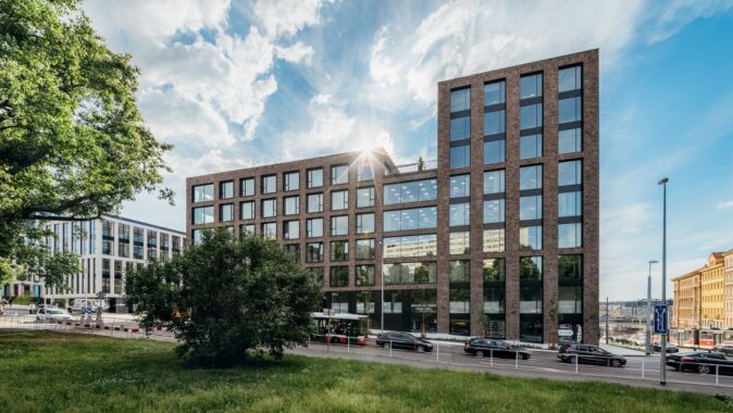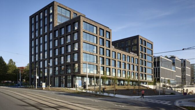 na Prahu od Strahovského kláštera příjemným protikladem k historické budově