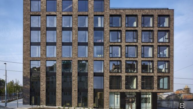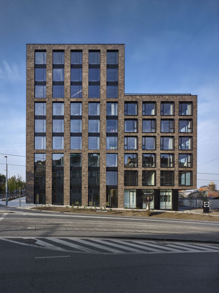 hlavního nádraží. Dvě administrativní budovy jako nenápadná dominanta ve svahu,