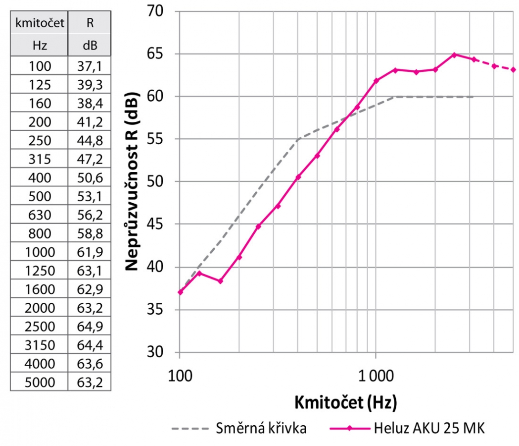 je neprůzvučnost menší, např. R = 45 dB. Na vyšších kmitočtech je neprůzvučnost vyšší, např. R