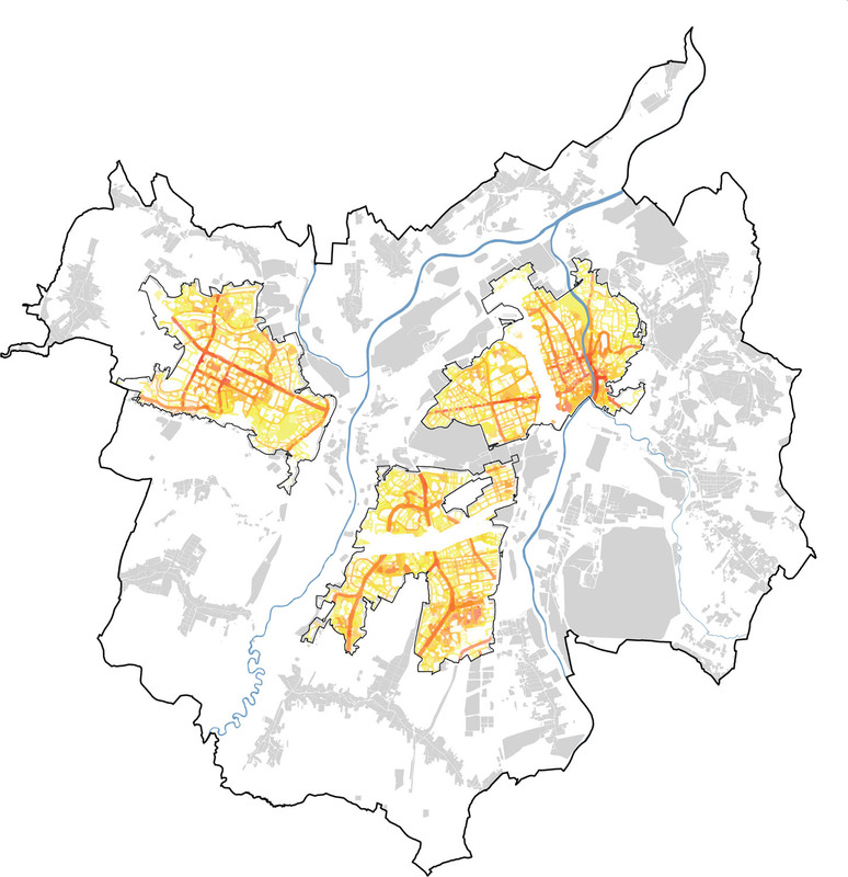 Z urbanistického hlediska je Ostrava objektivně řídké město a má pouze 13 obyvatel na hektar, tedy poloviční hustotu zalidnění než Praha – a ani ta není v kontextu velkých evropských měst „hustá“. Subjektivně je Ostrava děravé město. Je zde množství proluk a velké kompaktní části jsou odděleny a obklopeny těžce propustnými dopravními stavbami modernistického střihu, železnicemi, průmyslovými areály nebo řekami i nezastavěnými oblastmi (ne všechny lze chápat jako green fingers, ale jsou mezi nimi i hodnotné lokality jako Poodří nebo halda Ema). Dobrá zpráva je, že přes všechny limity je Ostrava ono mytické „město krátkých vzdáleností“. Pokud se tedy pohybujete pouze po jednom ze tří „měst ve městě“ (Moravská Ostrava, Poruba a Ostrava-Jih). Občanská i komerční vybavenost, parky, veřejná doprava i kultura je dosažitelná v takové míře, kterou lze jen závidět. Pěší a cyklistická doprava je na vzestupu, k čemuž má Ostrava ostatně skvělou morfologii – je placatá.
