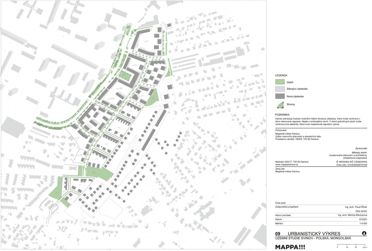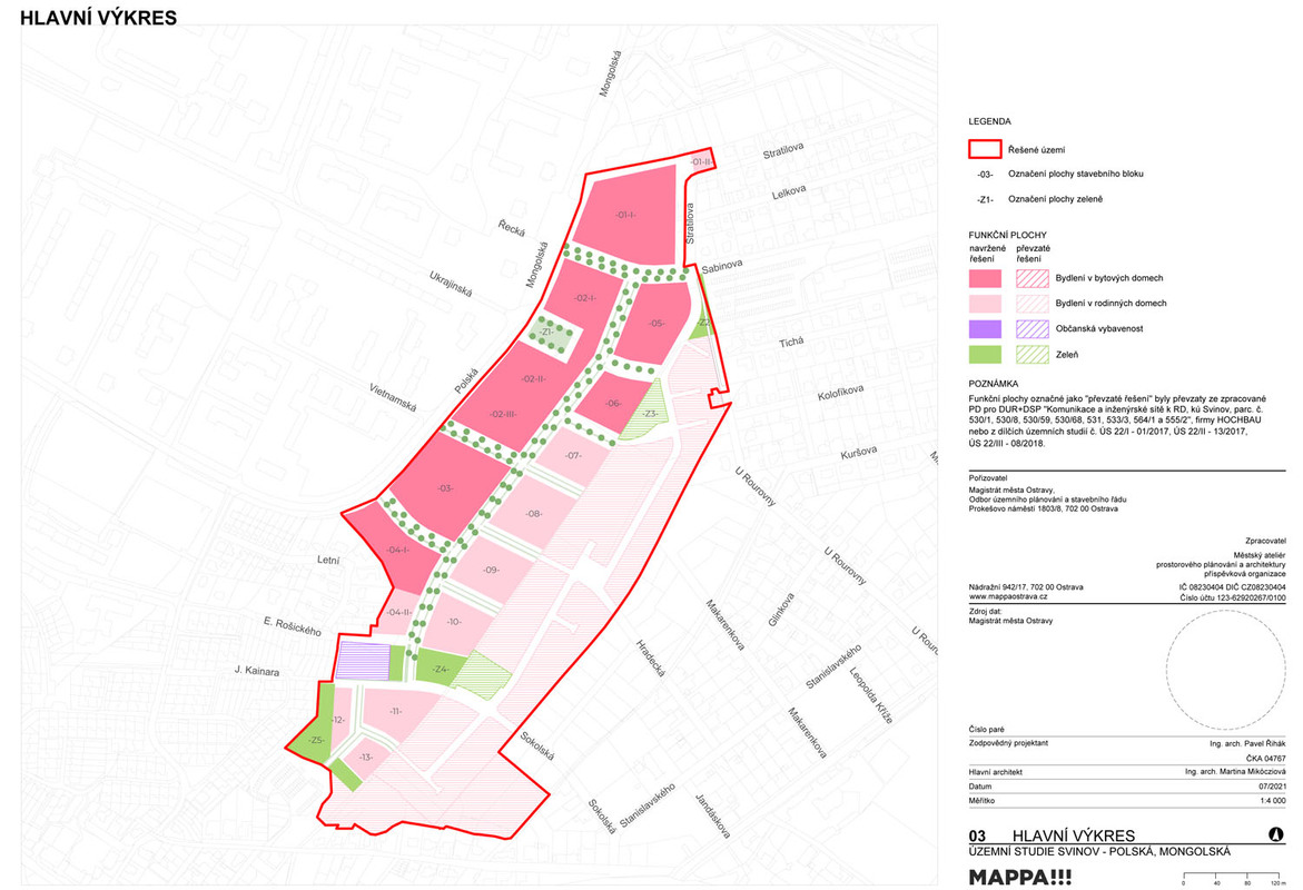Nezastavěné, strategicky dopravně umístěné a majetkově fragmentované území o ploše 23 ha, které je ohraničené ulicemi Polská a Mongolská, z východu sousedící se Svinovem a ze západu s Porubou, bylo v územním plánu dlouhodobě vedeno jako rezerva a je určeno pro výstavbu bytových a rodinných domů. Úkolem MAPPA bylo „provést inventuru“ záměrů v lokalitě a navrhnout ucelenou a smysluplnou koncepci rozvoje. Výřezy z výkresů Vize prostorového rozvoje byly klíčovým územně analytickým podkladem pro zpracovanou územní studii. Pomocí nových metod z Vize, ale také na základě územního plánu, s ohledem na okolní zástavbu a s plnou znalostí záměrů i limitů v území – tím je zejména vedení velmi vysokého napětí – navrhl tým MAPPA v čele s architektem Pavlem Řihákem adekvátní městskou strukturu. Kromě jiného studie definuje kapacity a objemy jednotlivých budov v tomto dosud prázdném místě Ostravy.