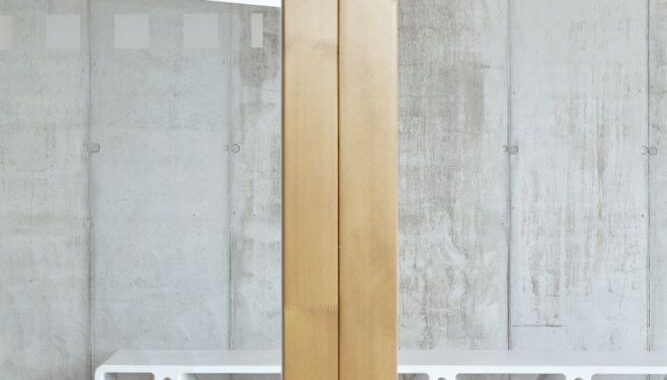 Nebylo to jednoduché. Tvar vypadá jako inženýrsky ukázněný a bez výstřelků, ale zhotovit a vyladit funkční formu nám trvalo řadu měsíců, o mnoho déle, než byl plán. A teď máme radost – monumentální, skoro třímetrový kus ušlechtilého betonu při pohledu zdálky ukazuje svou maximální transparentnost, při pohledu z blízka zase fungují propracované geometrické linie.
