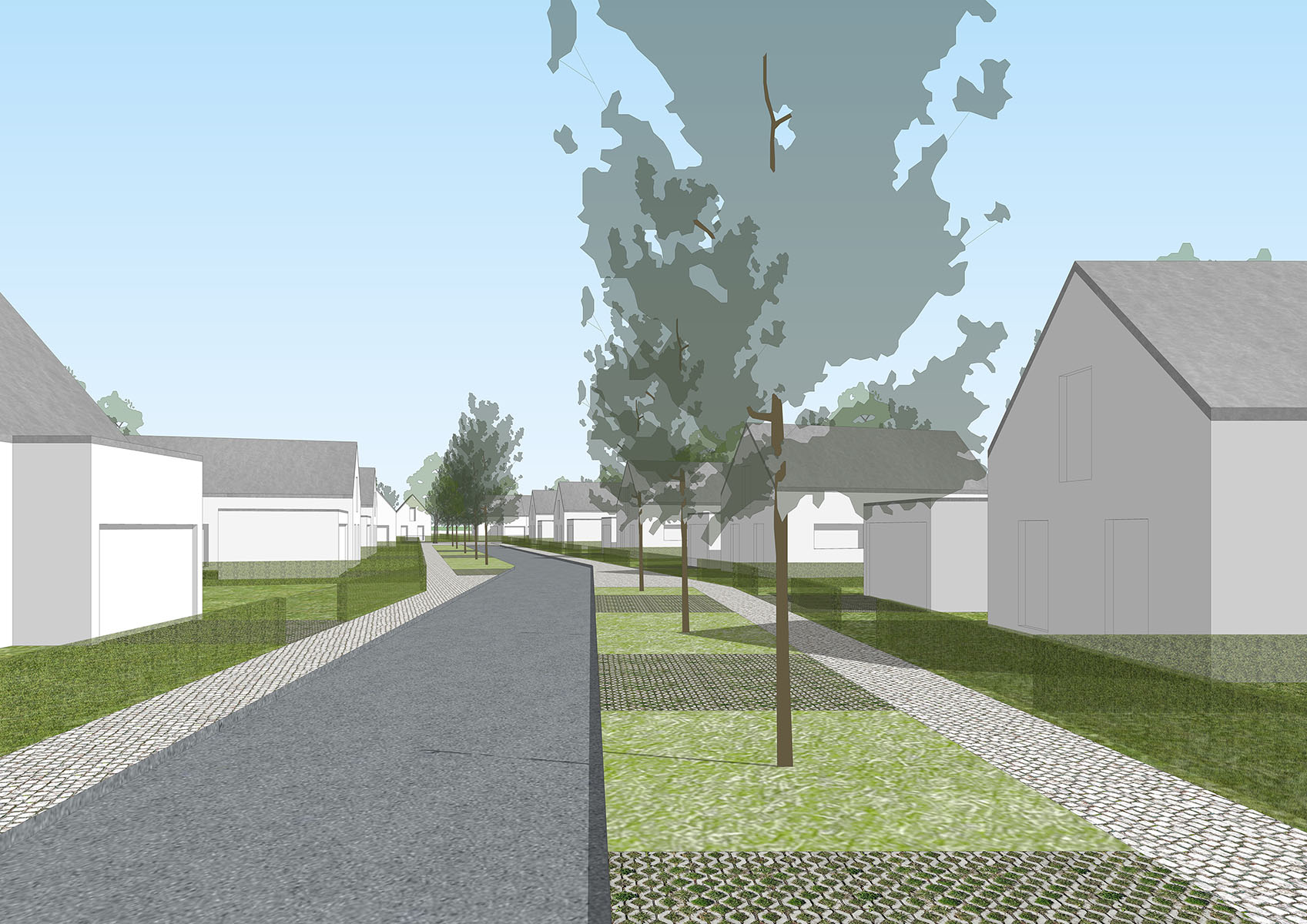 sítí pěších komunikací, které navazují na hlavní ulici nové čtvrtě.