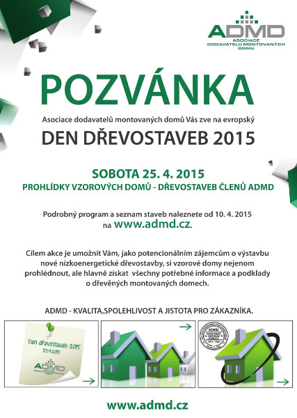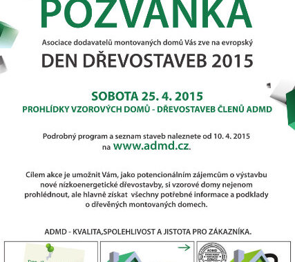 V sobotu 25. dubna se od 10 hodin v rámci akce Den dřevostaveb otevře v celé České republice kolem 30 vzorových a referenčních domů, členů Asociace dodavatelů montovaných domů (ADMD). Den otevřených dveří tuzemských dřevostaveb se tak stane pro širokou veřejnost vhodnou příležitostí seznámit se s kvalitními a moderními nízkoenergetickými domy na bázi dřeva, s jejich konstrukcí, vlastnostmi a se samotnou technologií výstavby.