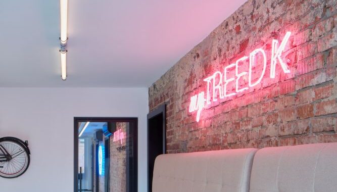 Záměrem bylo navrhnout osobitou, zajímavou, nikoli sterilní ordinaci. Celý směr se začal formovat během realizace řešení pro původní kliniku TREEDK v objektu ze třicátých let. Ordinace myTREEDK na její koncept navazuje. V novém místě se však nabízelo být odvážnější, více avantgardní.
