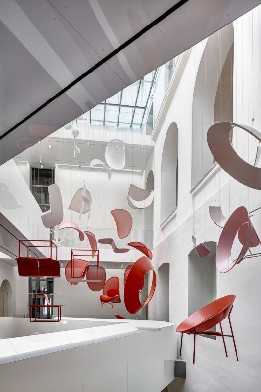 Tento pocit pomáhá na diváka přenést architektonická koncepce ve stylu site-specific. Originálně využívá prostoru světlíku, jenž se stal ideálním místem pro prezentaci designu. Jako výrazný prvek zaujmou pochozí lávky přepažující zastřešené atrium. Návštěvníky na nich doslova obklopují objekty Lucie Koldové. „V komponentech se snášejí z pomyslného nebe světlíku a před očima diváků se spojují v celek,“ přibližuje kurátorka Michaela Kádnerová.