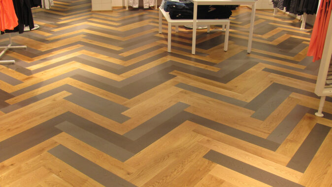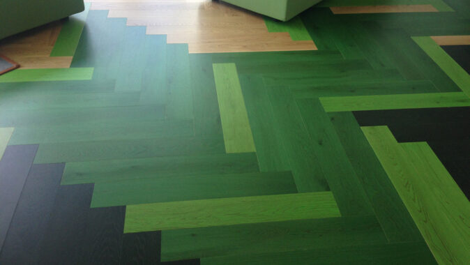 podlahy položené do tzv. rybího vzoru. Tento tradiční vzor, který je