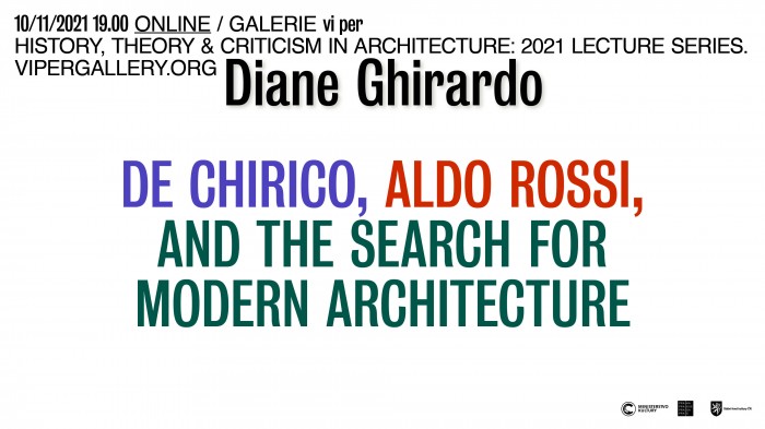 Giorgio De Chirico působil asi 30 let před Aldo Rossim, přesto jsou mezi nimi některé pozoruhodné podobnosti – stejně jako srovnatelně velké a nápadné rozdíly. Přednáška bude zkoumat povahu diskusí o tématech od těch běžných po ty pozemské, od poznávání historických základů navrhování až po proměny každého z obou témat. Srovnáním nastíní některé společné způsoby interpretace těchto dvou autorů, ale také radikální rozdíly mezi nimi. Rossi opakovaně odkazoval na De Chirica a zvláště v prvních letech jej volil jako referenčního tvůrce pro svou práci.