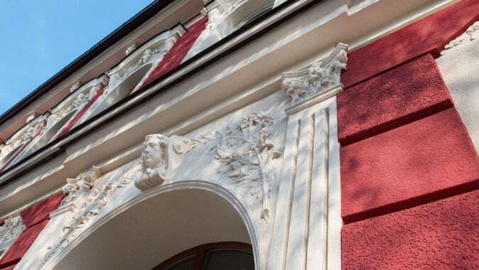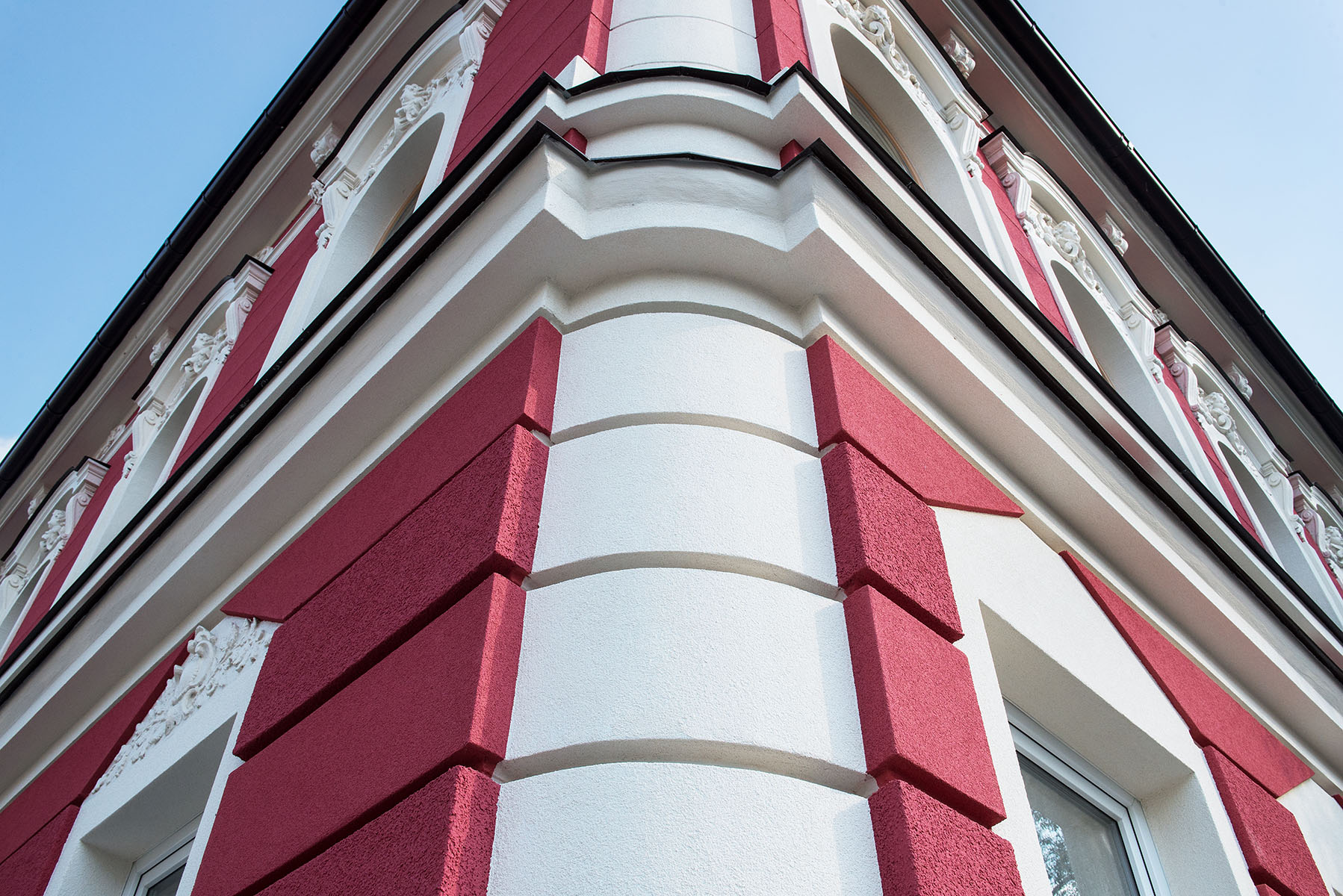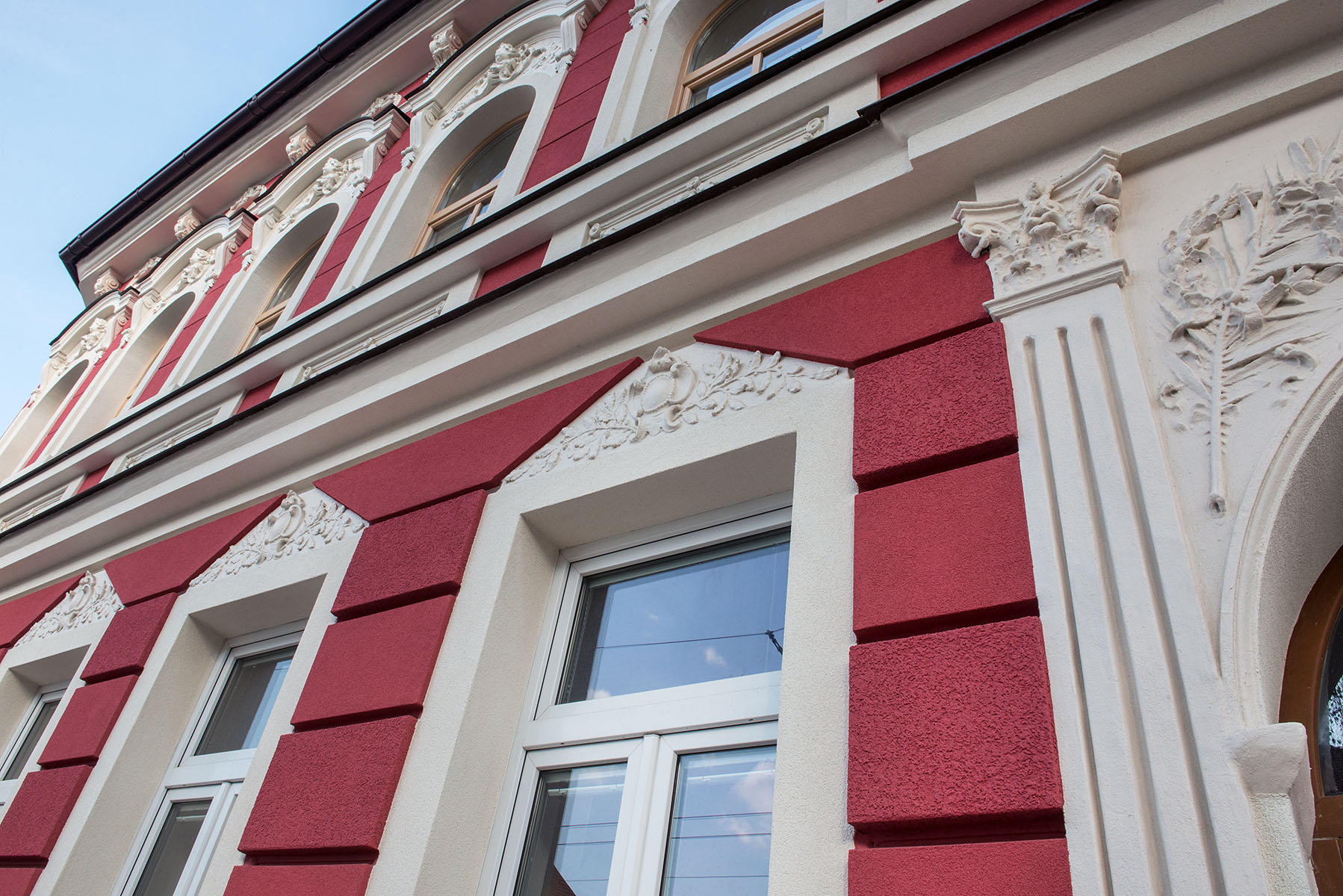 Roman Hajský. Vymodelované profily fasády řemeslníci lokálně opatřili štukovou