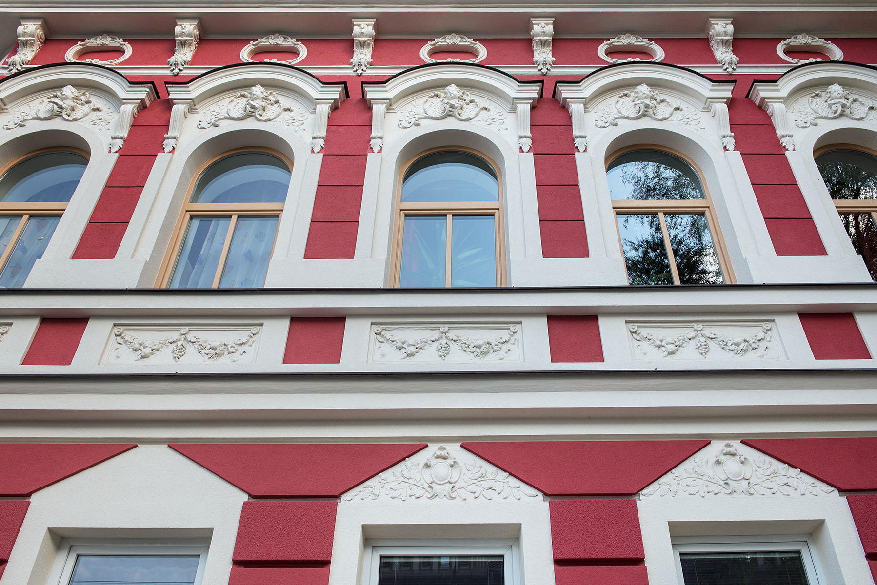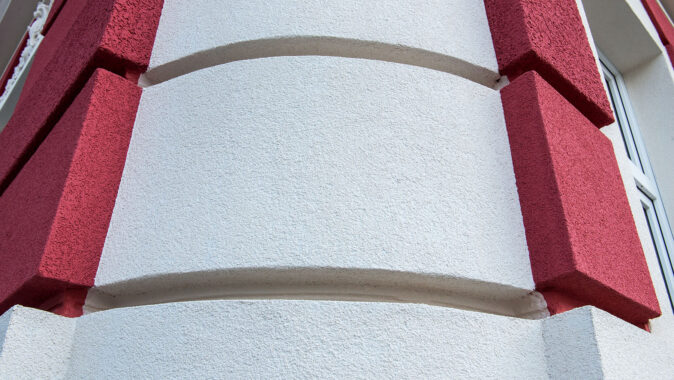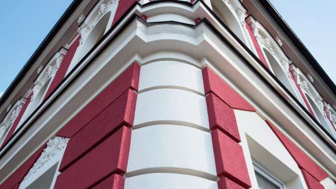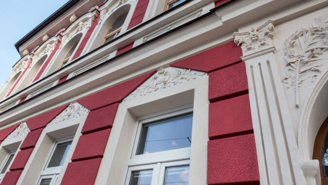 fasád se štukovou výzdobou, které jsou náchylnější ke vzniku drobných trhlinek,