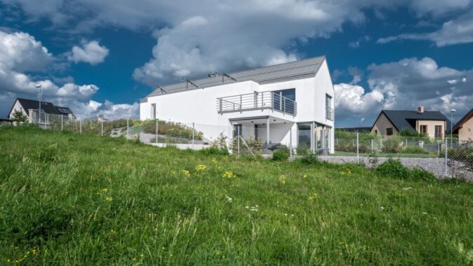 Pozemek v lokalitě Červený Kopec, který si mladý pár vybral pro výstavbu svého domu, je poměrně úzký s výrazným sklonem k jihu. To, spolu s přáním klienta zachovat volnou západní část pozemku pro přístavbu bazénu, značně ovlivnilo tvar domu.