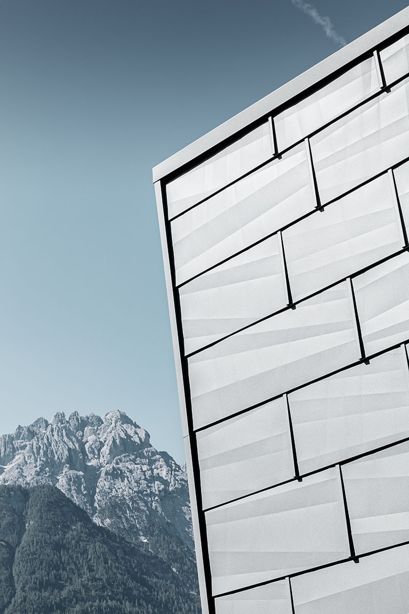 Majestátní vrcholy Dolomit jsou odsud jako na dlani. Architekt, který se