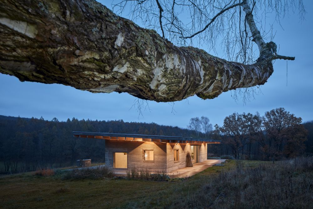 Po procesu formování zadání přišel moment rozhodování o materiálu. Klient si během pár minut udělal jasno, rozhodl se pro konopný beton. Pro mě to byla obrovská výzva, s tímto materiálem nejsou v České republice zkušenosti. Naučená švýcarsko-japonská preciznost trpěla, byl to boj a pro mě další skvělá škola. Zároveň mě materiál fascinoval svými vlastnostmi, dlouholetou historií, možností vrstvení i tím, že si takový dům může člověk postavit sám. Materiál mnoho let petrifikuje a odčerpává ze vzduchu oxid uhličitý. Má výborné izolační schopnosti, je recyklovatelný, odolný vůči škůdcům, ohni i plísním. Stavba je difuzně otevřená.