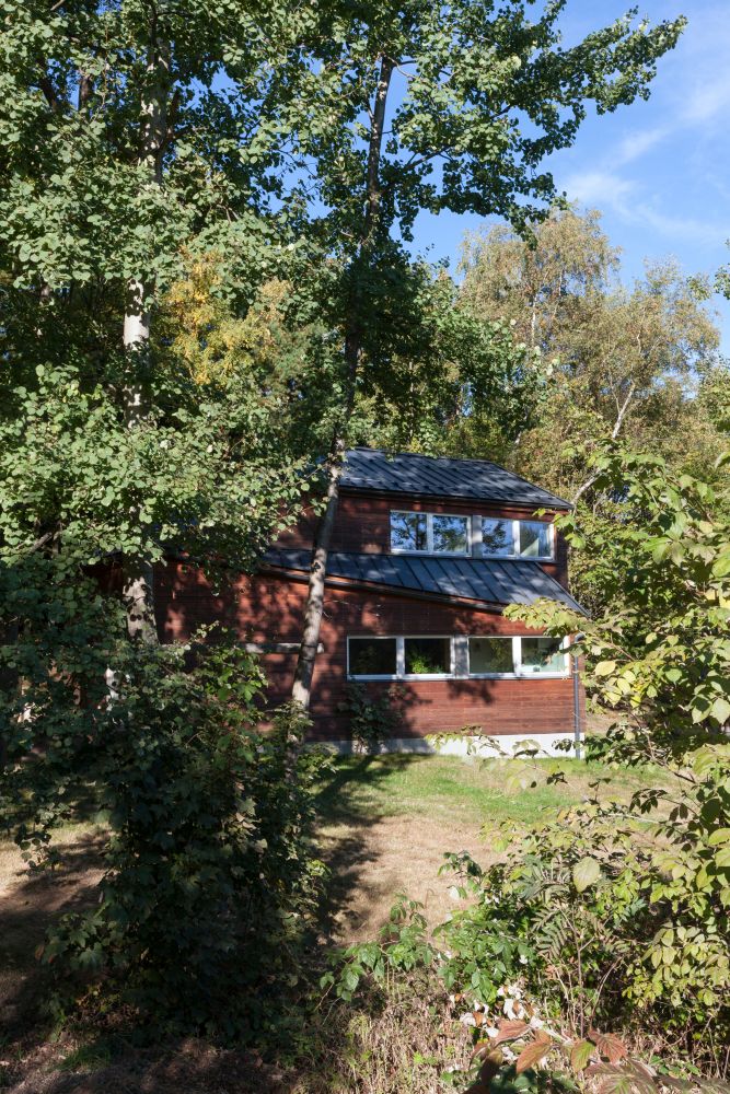 přiznaný nosný trámový skelet a záklop stropů a střechy. Dřevo tedy tvoří