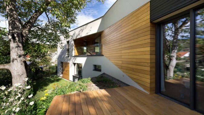 a odpočinková část domu směřuje do soukromí zahrady, využívají polední a