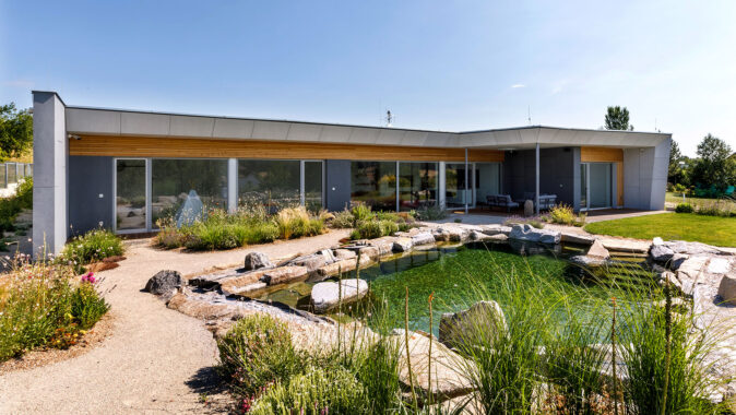 v jižních Čechách. Výsledkem je prosluněná a do přírody otevřená stavba,