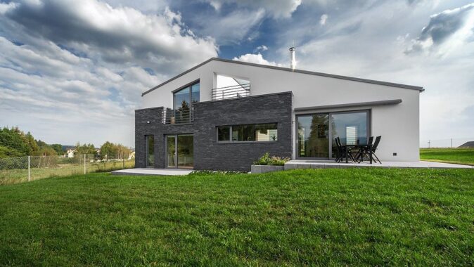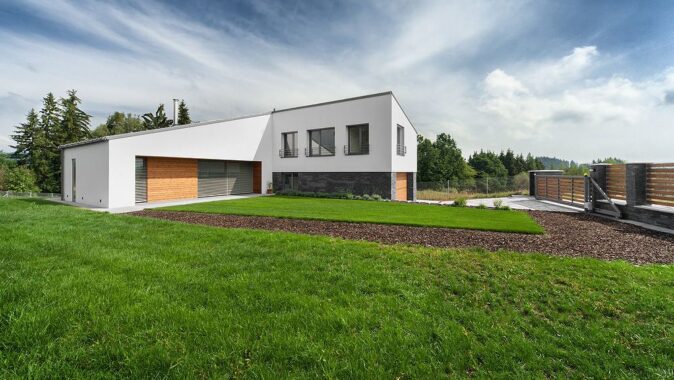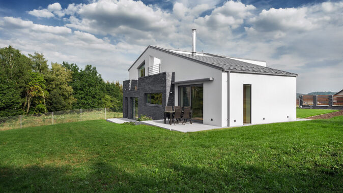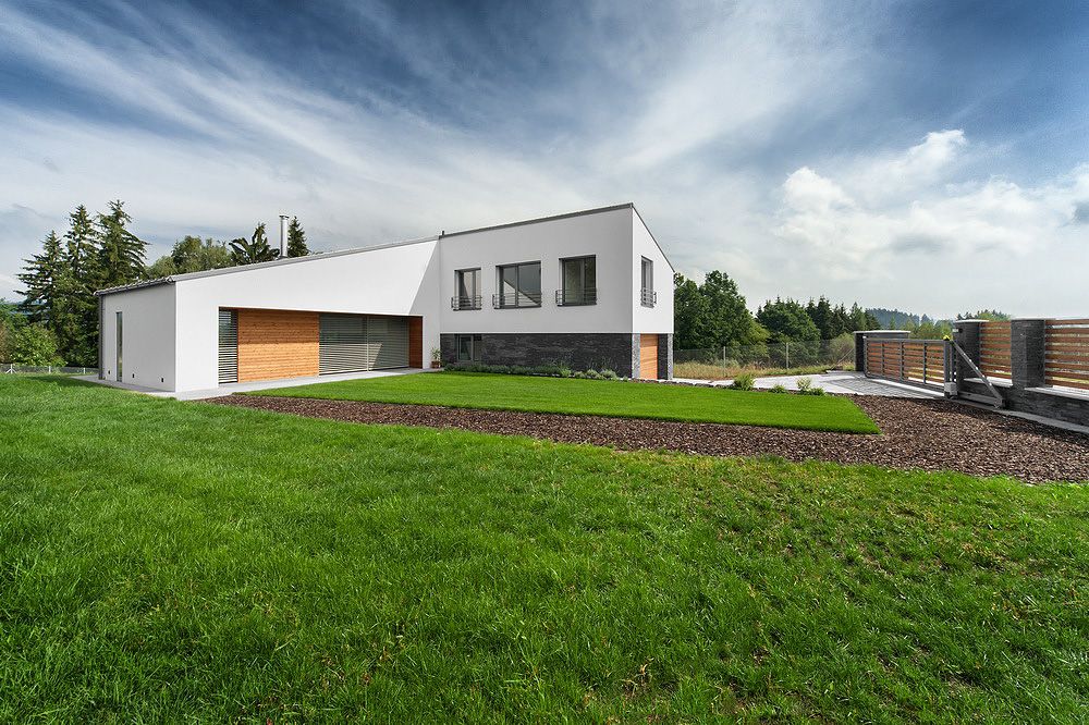 zároveň měli jižní slunce a výhled na sever, zvolili jsme uspořádání domu do